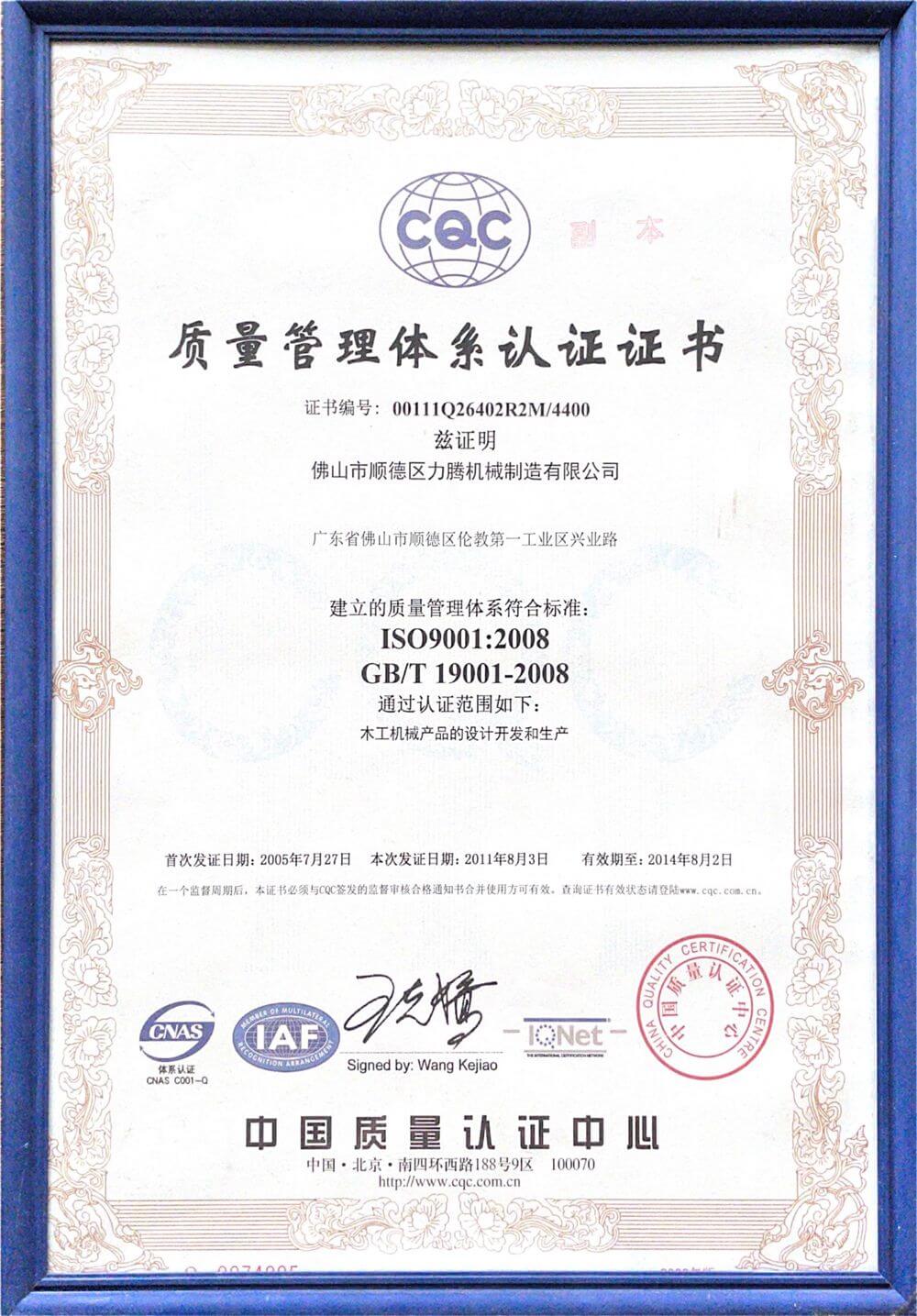 質(zhì)量管理體糸認(rèn)證證書-1