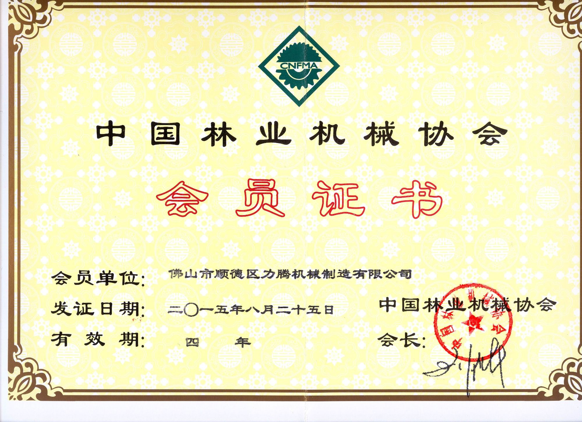 中國(guó)林業(yè)機(jī)械協(xié)會(huì)會(huì)員證書