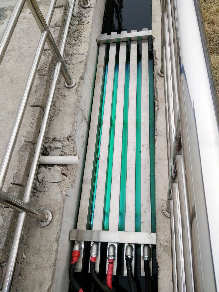 三、性能特點 框架式(明渠式)紫外線消毒器采用模塊化設計,安裝方便、操作簡單,可根據(jù)不同處 理 量 及 用 戶 要 求 自 由 組 合 模 塊 , 適 用 范 圍 廣 , 可 靠 性 高 。 該 系 統(tǒng) 殺 菌 速 度 快 、 效 果 好 , 殺 菌效率高 ,運行費用低。沒有因消毒產(chǎn)生的二次污染,所采用的低壓高強汞燈由于有效壽命大大降低了更換燈管產(chǎn)生的運行和維修費用