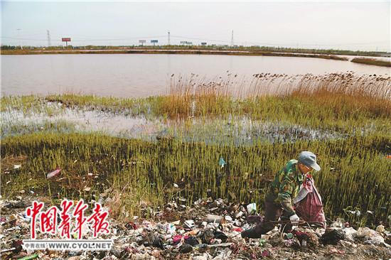 4月14日,河北省霸州市勝芳鎮中亭河,遠遠望去河水呈土紅色,河岸的泥洼和水草中已是很深的鐵銹色。河邊坐落著大大小小鋼管廠、化工廠、家具廠、玻璃廠、金屬廠……